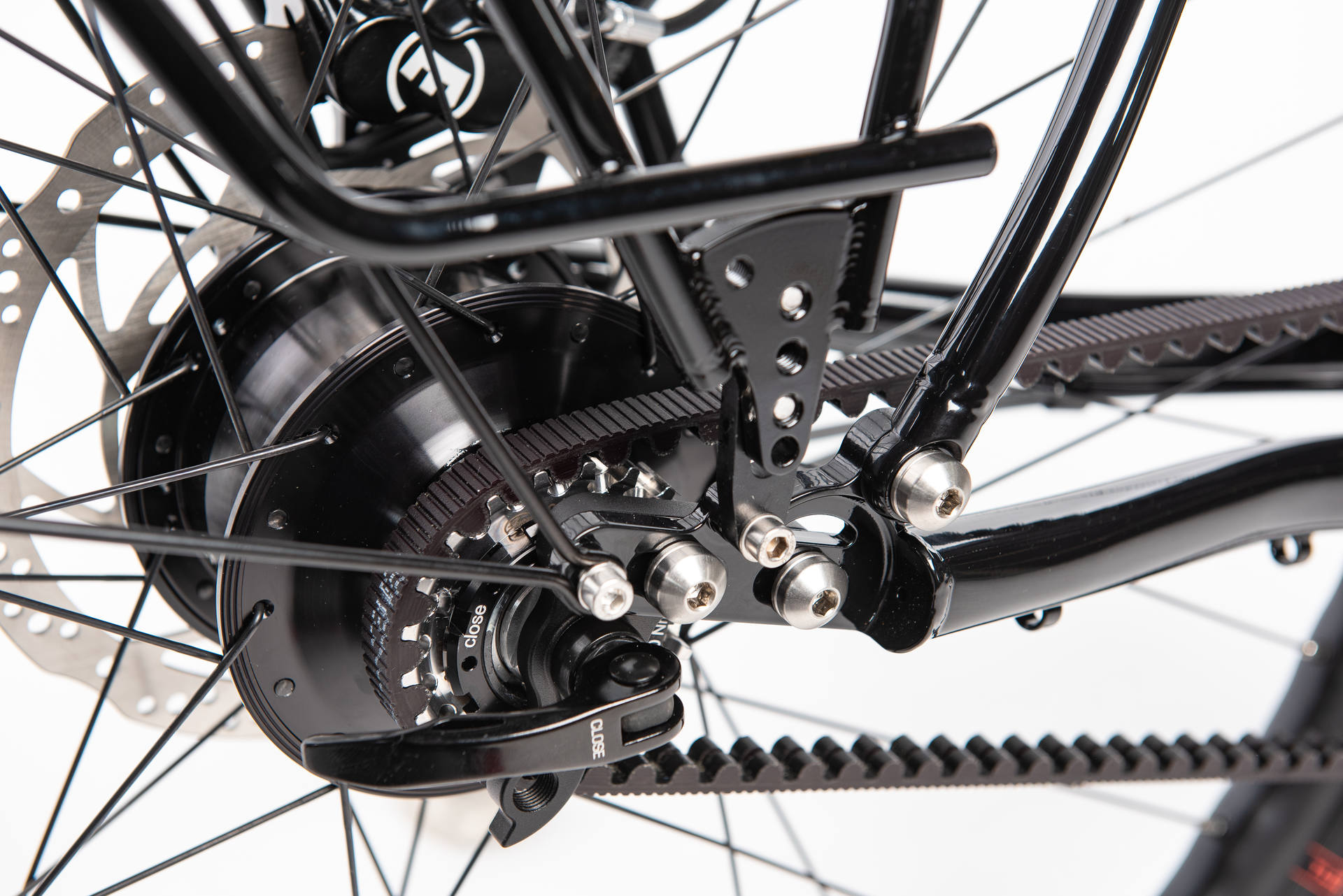 Der speziell entwickelte Hinterbau ist Rohloff- und Riemen-kompatibel und ermöglicht maximale Flexibilität. Dank „Slider“-Ausfallenden lässt sich das System optimal einstellen.