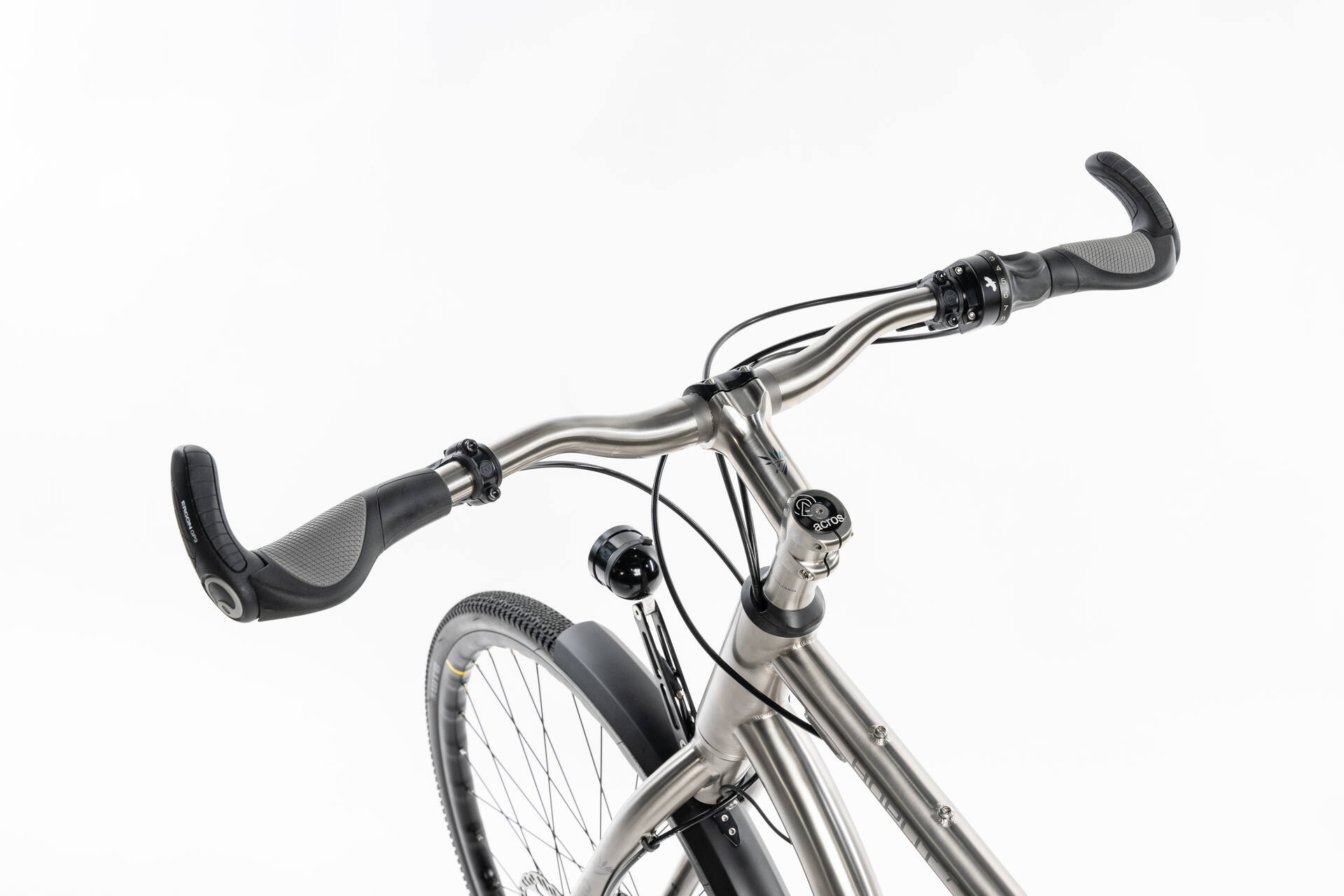 - Cockpit: Titan-Lenker und Titan-Vorbau für hohe Stabilität